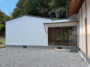 新しく外部に面する部分にサッシや庇を設置し出入り出来るようにしました。