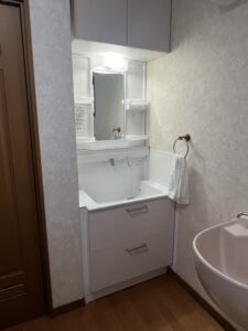 《洗面所の洗面化粧台・暖房設置》をさせていただきました。